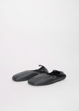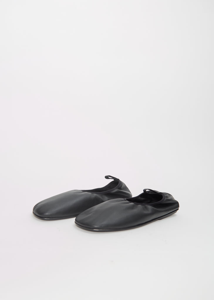 Carven deep black slip-on flat with an elastic topline and back loop for an easy fit in smooth nappa leather. Features a lightly padded insole and is fully lined in soft leather.