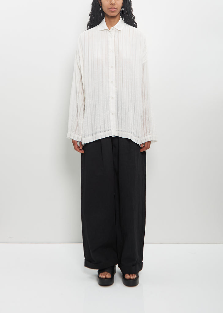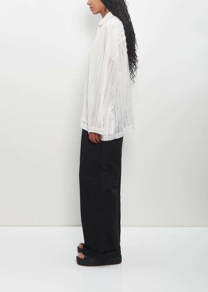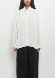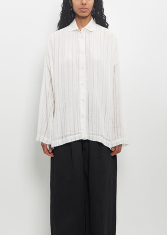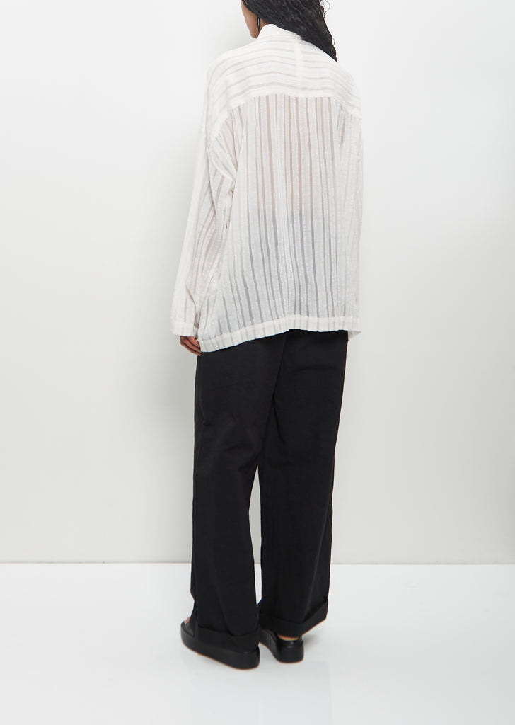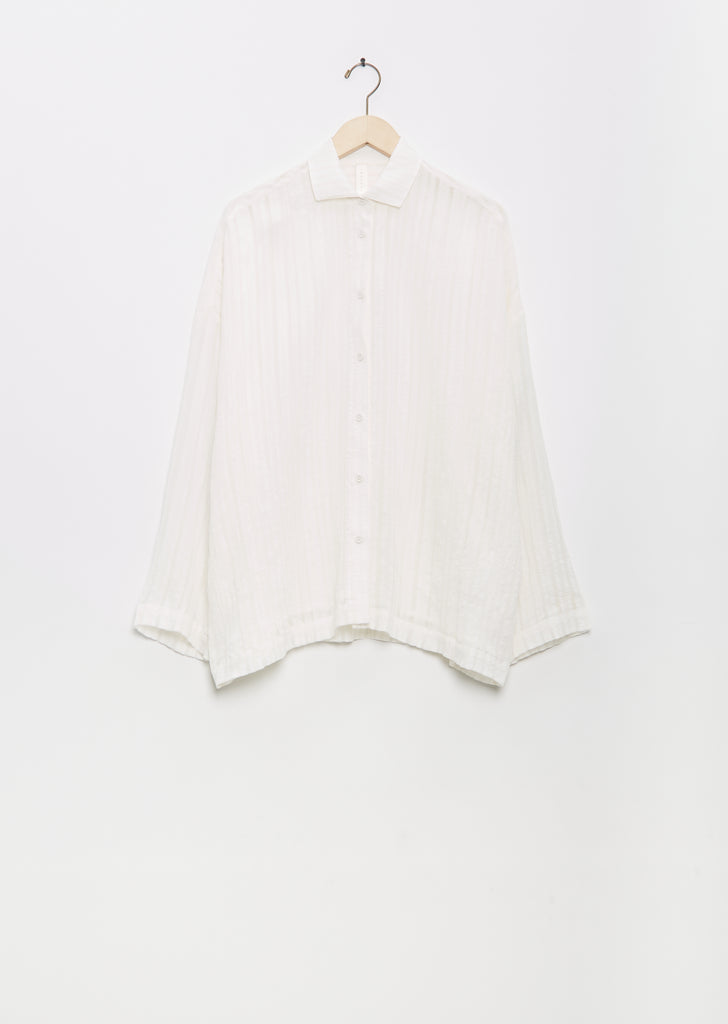 Lauren Manoogian white shirt with a spread collar and dropped shoulders in a light cupro, cotton and silk blend gauzy fabric with a stripes pattern. Features back yoke and tonal buttons closure at front. Relaxed fit. Clean finish.