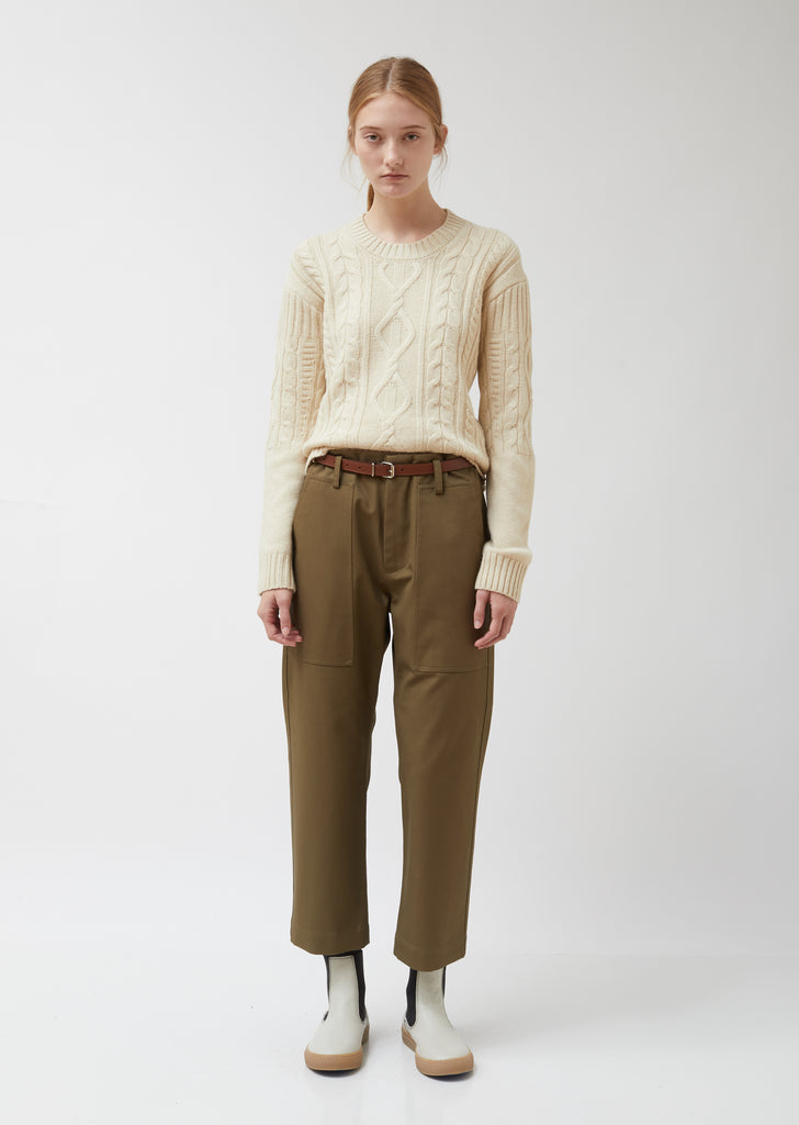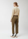 Straight-fit cropped pants in khaki-green cotton twill, designed with rectangular patch side pockets. Mid-rise. Grown-on waist. Belt loops. Concealed front closure. Single patch back pocket. Straight legs. Cropped above ankle. Relaxed fit.