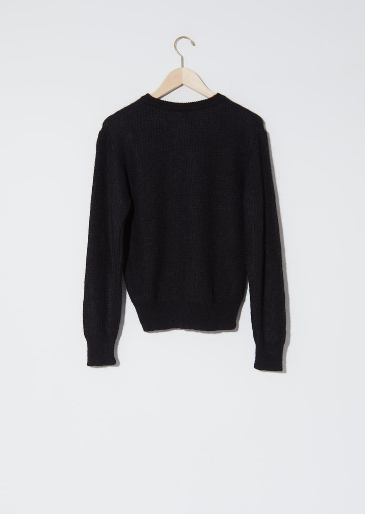 Stephan Schneider Mia Jumper in Black. Classic crewneck style sweater in the label's signature mohair blend knit with ribbed trim finish.