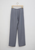 Totême Arles Trousers in Shadow. Crafted in a fluid crepe, these extra long trousers feature a slim waistband and loose-fitting straight legs.