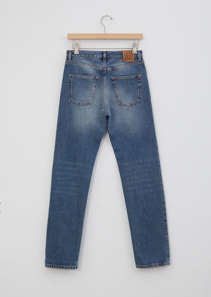 Totême Studio Denim In Vintage Wash. Crafted in 100% Cotton, these straight fit denim jeans are cut from a rigid cotton fabric that will stretch with more wear.