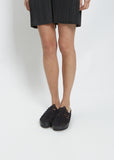 Rosa Mosa black wooden clog with cotton cord weaved upper and vegetable tanned leather heel trim.