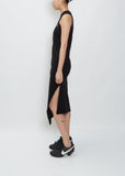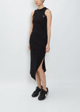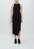 Sacai black asymmetrical tank midi dress with snap details in a cotton rib knit.