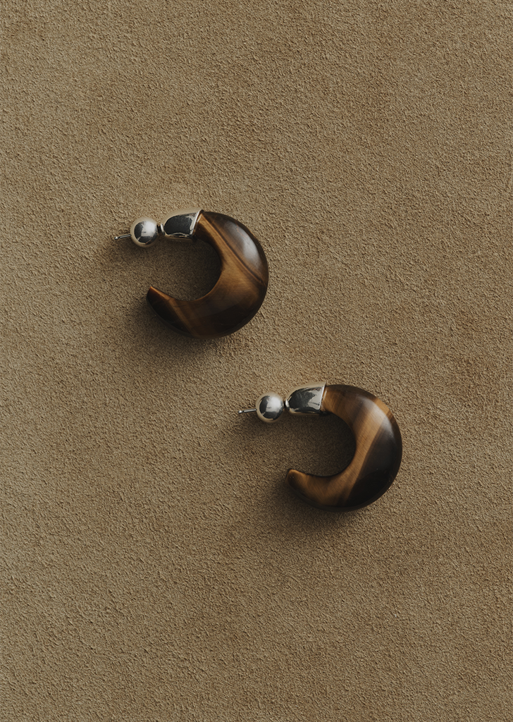 Sophie Buhai donut hoops in tiger's eye with sterling silver.