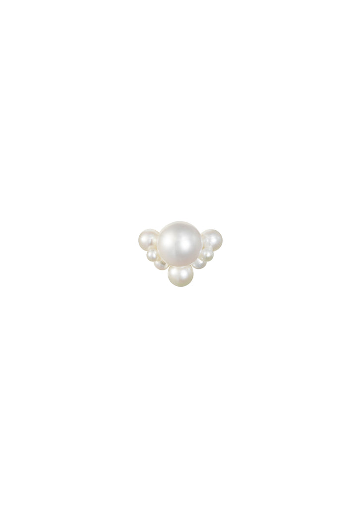 Sophie Bille Brahe single pearl earring crafted in 14K yellow gold with round freshwater pearls delicately arranged in various sizes.