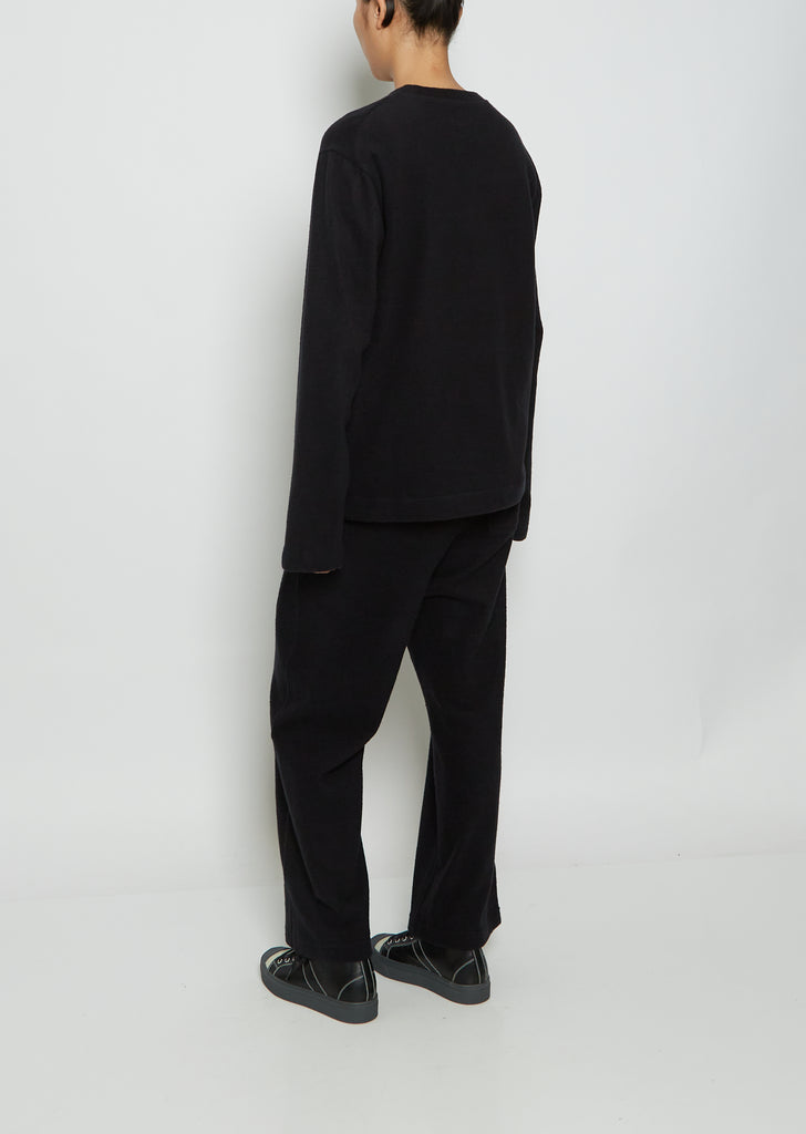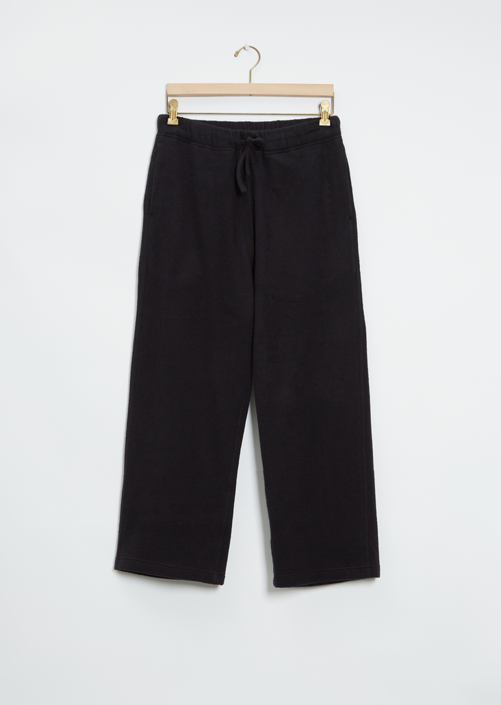 Sofie D'Hoore black wide leg trousers with an elasticated waist and tonal self drawstring in a ultra soft brushed cotton jersey.