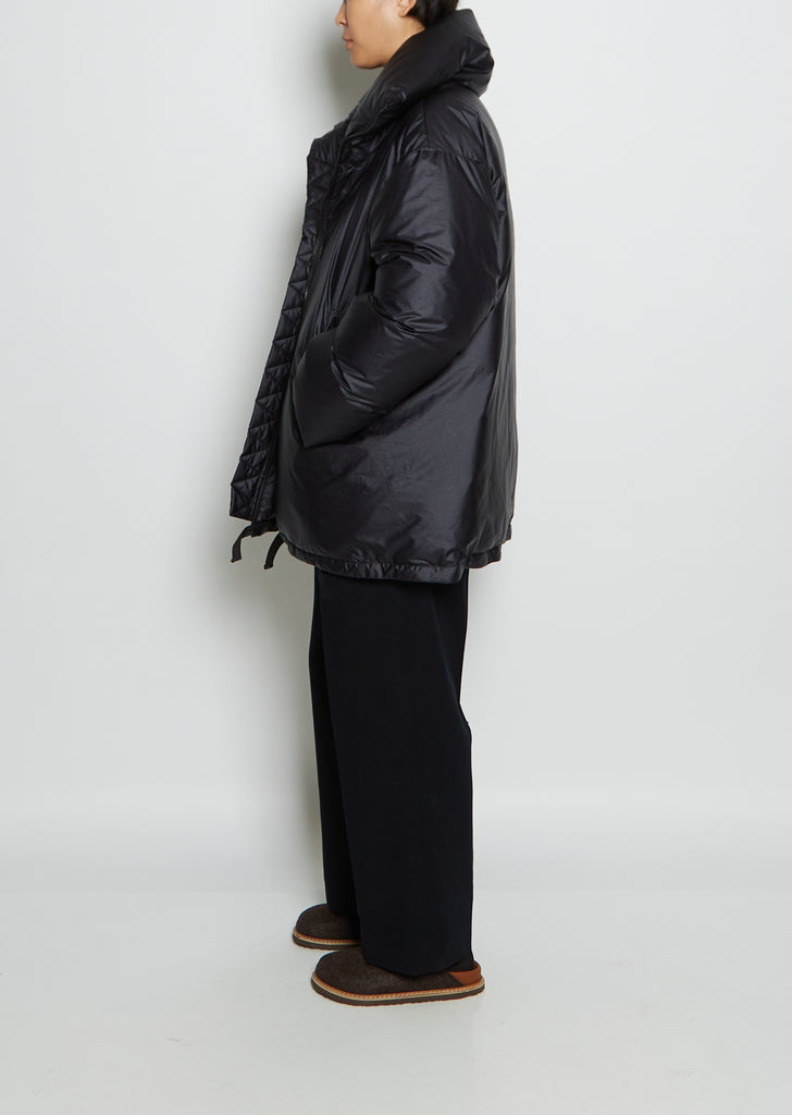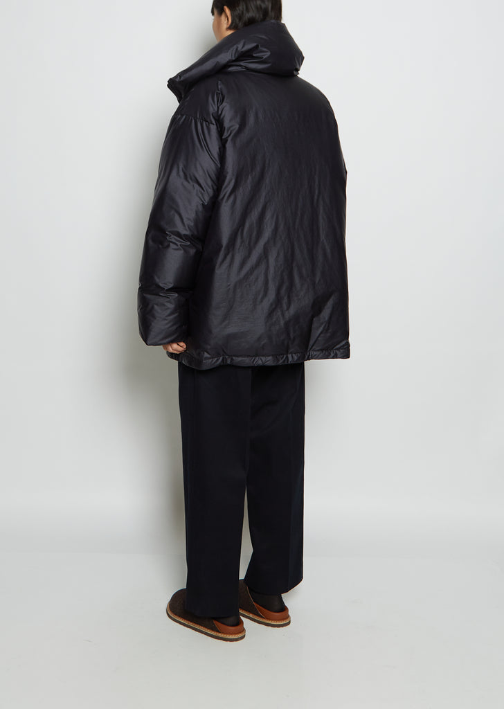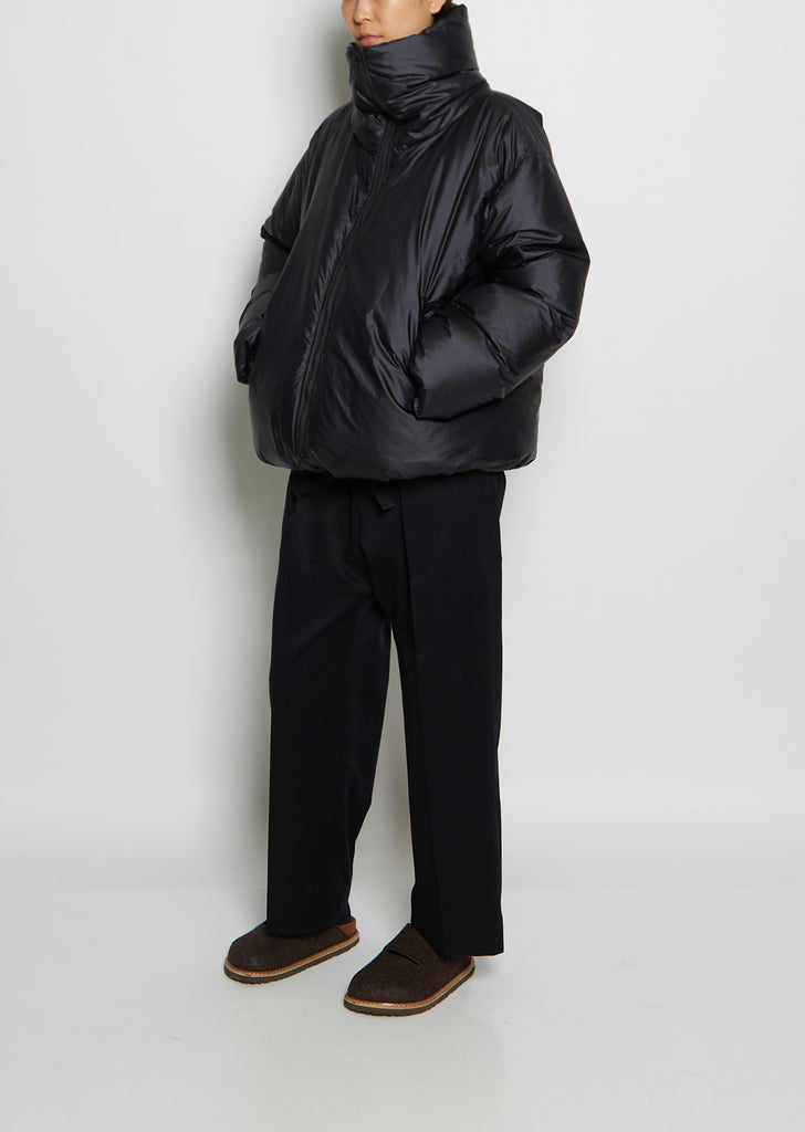 Sofie D'Hoore off-black puffer jacket with a tall collar made with a polyamide outer shell and feather down fill. Features a two-way matte black zipper, front welt pockets and a grosgrain drawcord at the bottom hem.