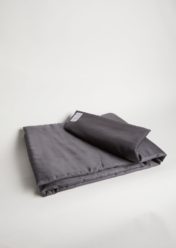 Color: Rainy Grey. 62% Cupro, 38% Silk. Filling: 100% Polyester. Made in Japan.