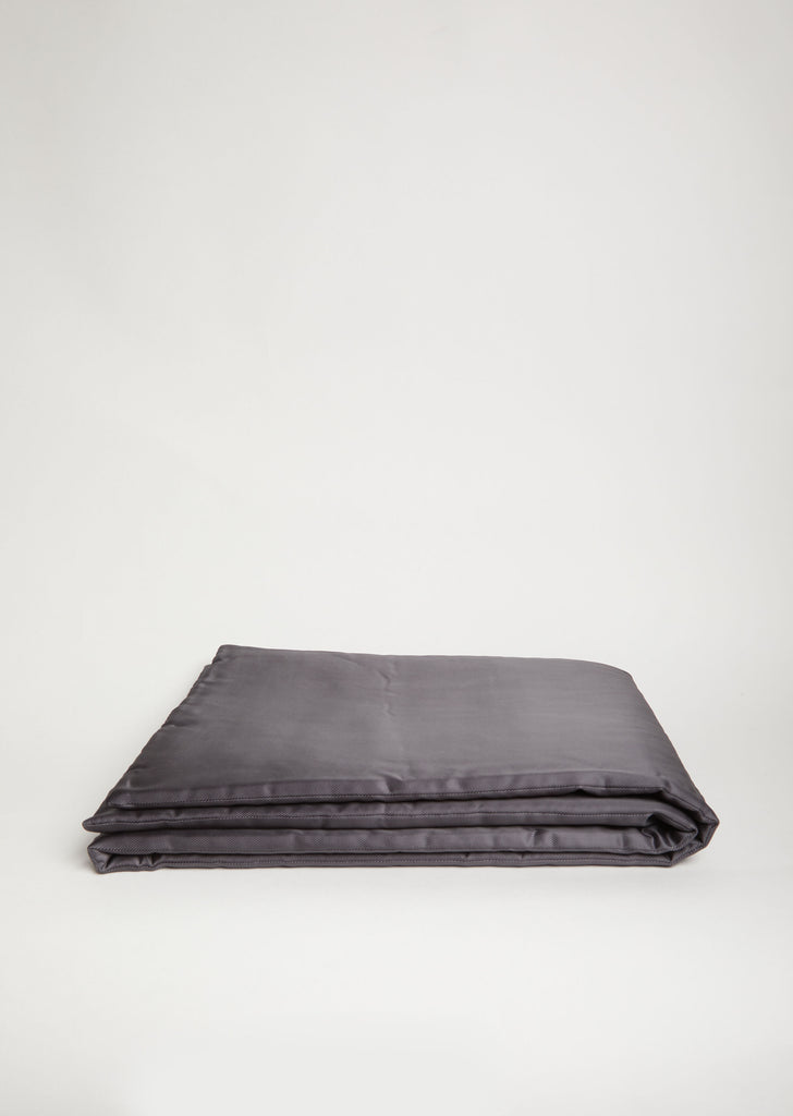 Seya slate grey rectangular quilted shawl in a silk-cupra twill. Filled with 100% polyester.