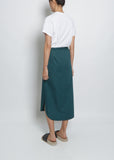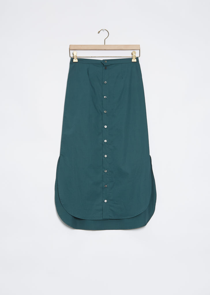 Seya pine green straight button-down skirt with side slits in a crisp cotton poplin.