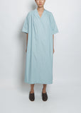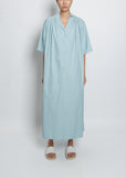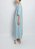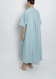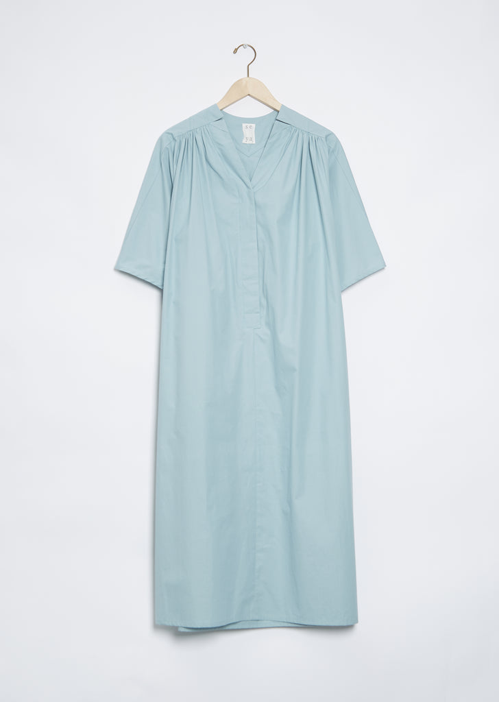 Seya water blue dolman sleeve v-neck tunic dress with shirring detail at the shoulder in a lightweight silk cotton poplin.