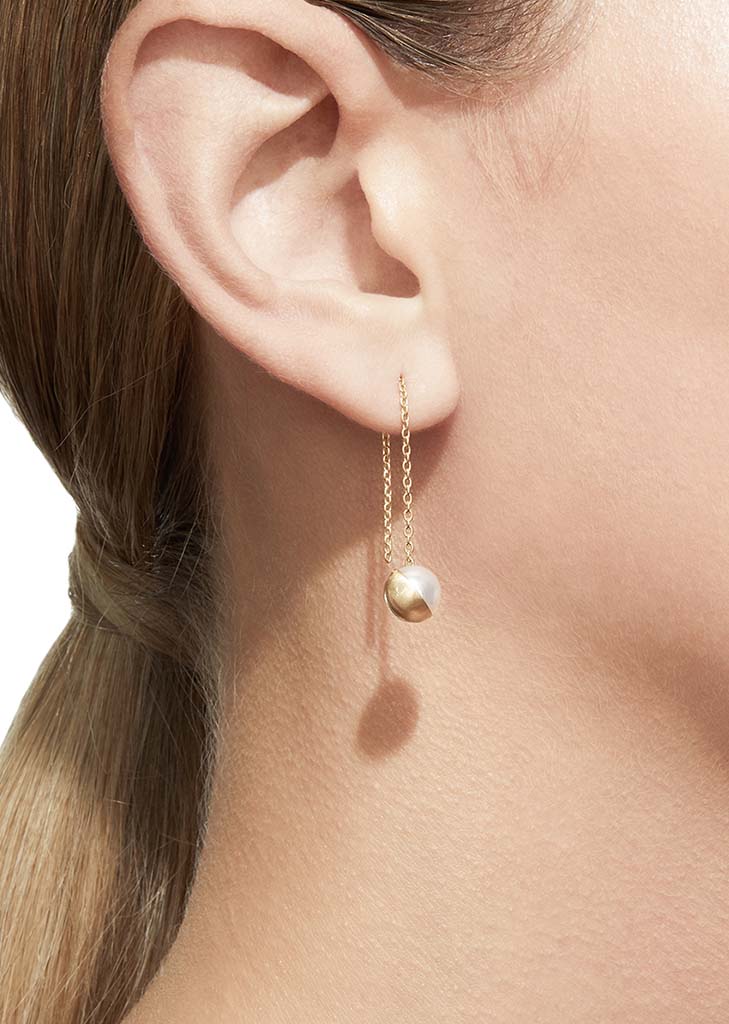 Shihara Half Pearl Chain Earring 135° in 18K yellow gold and Akoya pearl.