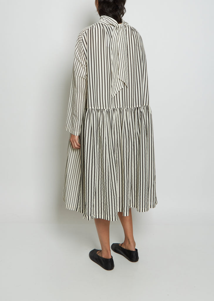 Sara Lanzi black and white dropped waist smock dress with an attached neck scarf in a cotton, silk, wool voile.