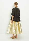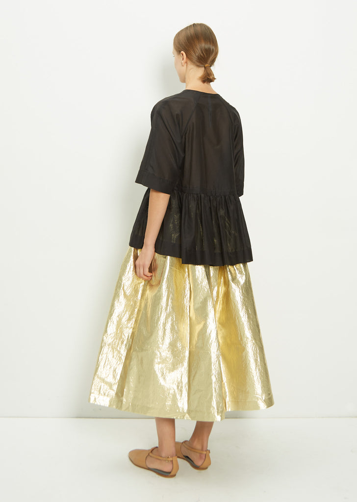 Sara Lanzi gold A-line gathered skirt in metallic gold polyamide polyester blend. Features an elasticized waist and invisible side pockets. Lined.