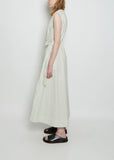 Studio Nicholson ice-toned shirred waist smock sleeveless dress with a self drawstring waist and side ties in a crisp cotton poplin.