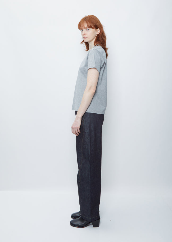 Studio Nicholson signature marled grey cotton t-shirt in compact cotton with a screen-printed logo at the nape of the neck.