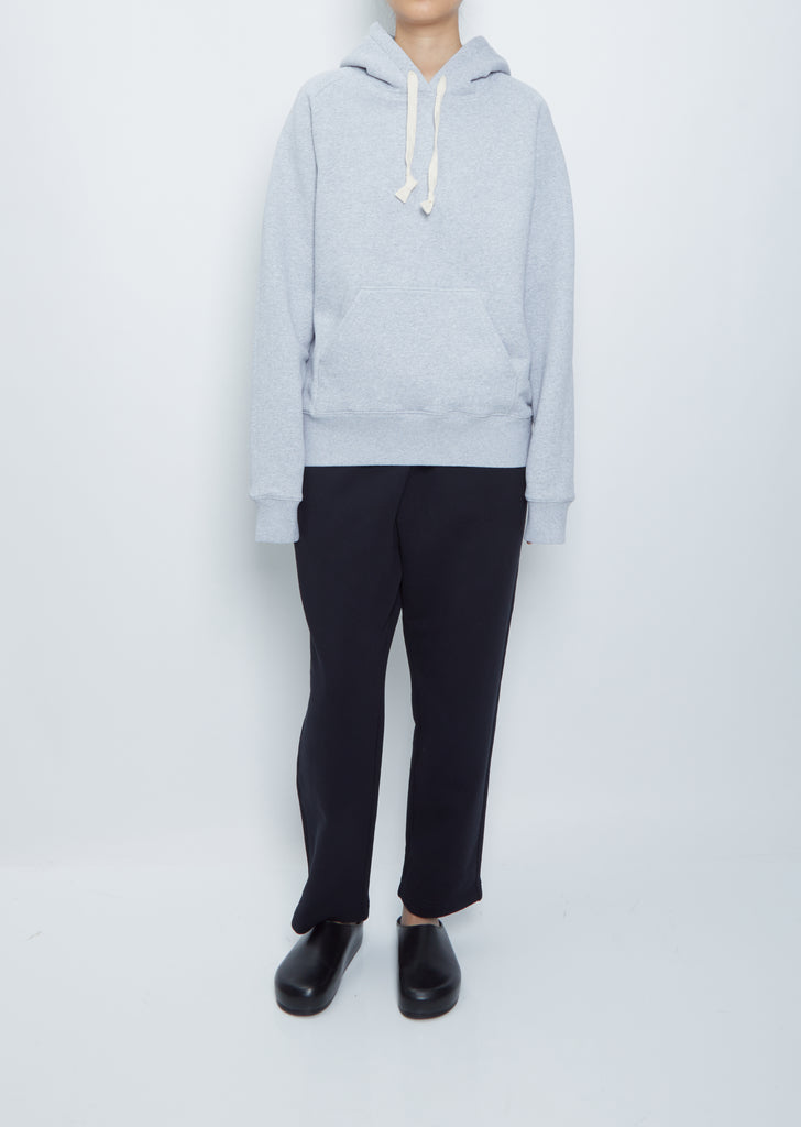 Studio Nicholson grey marl hooded sweatshirt with a raglan sleeve in a heavy weight cotton knit.