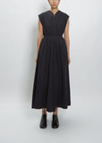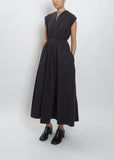 Studio Nicholson dark navy v-neck a-line dress with an elastic waist in a brushed powder cotton poplin.