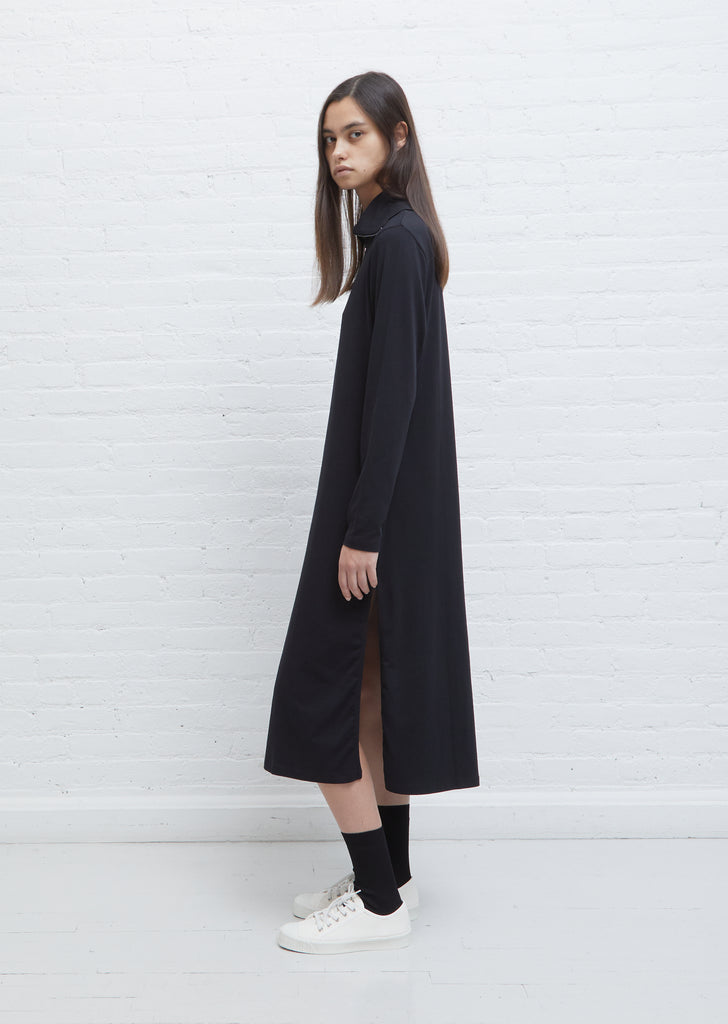 Studio Nicholson x Sunspel featherweight zip-up dress in soft stretch cotton jersey. Silver-tone zipper with branded zip pull. High side slits. Straight cut with a regular fit.