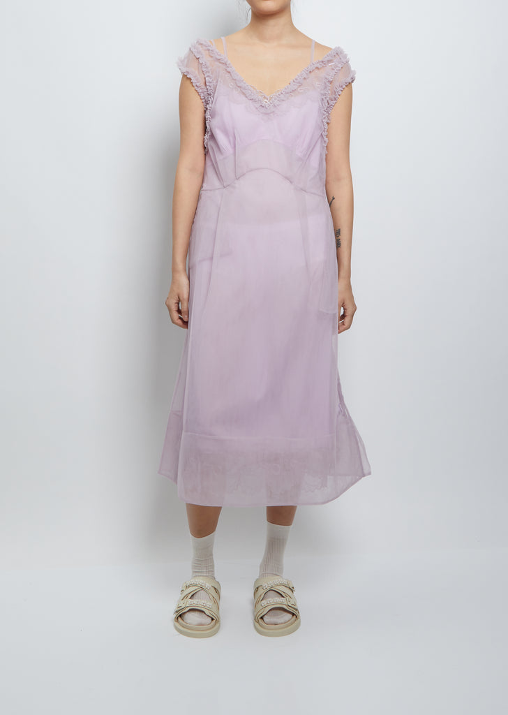 Simone Rocha lilac v-neck sleeveless dress with sheer tulle shell and lace trim solid slip.