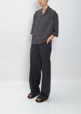 Stephan Schneider washed black button-down shirt with 3/4 length dolman sleeves in a lightweight brushed cotton twill.