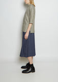 Stephan Schneider signature button-up shirt with a band collar and half sleeves in a green-grey multi-stripe cotton and modal fabric. Features a band collar and dolman sleeves. Finished with shell buttons. Slit detailing at sides. Relaxed fit.