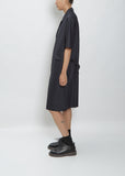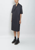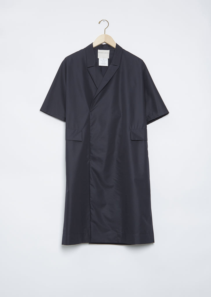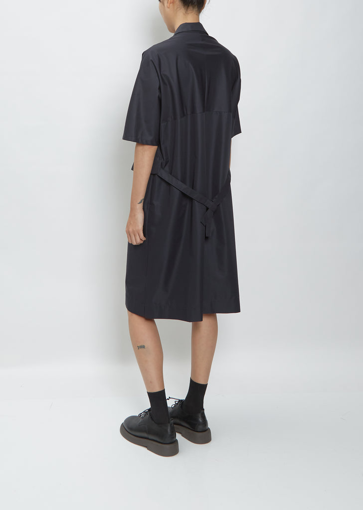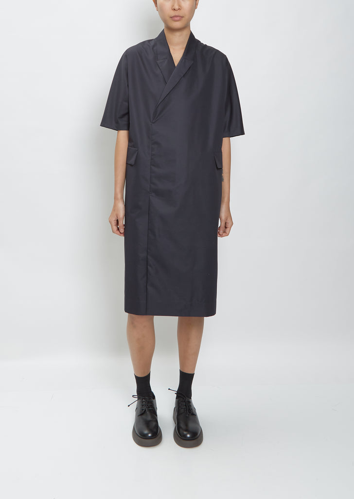 Stephan Schneider deep navy v-neck double-breasted wrap dress with a peak lapel in an iridescent cotton & nylon blend.