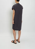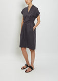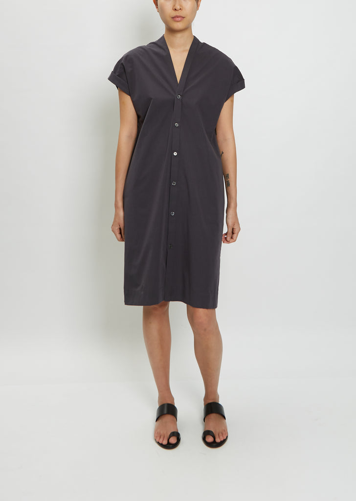 Stephan Schneider charcoal grey v-neck shirt dress with a dolman cap sleeve in a lightweight cotton twill.