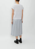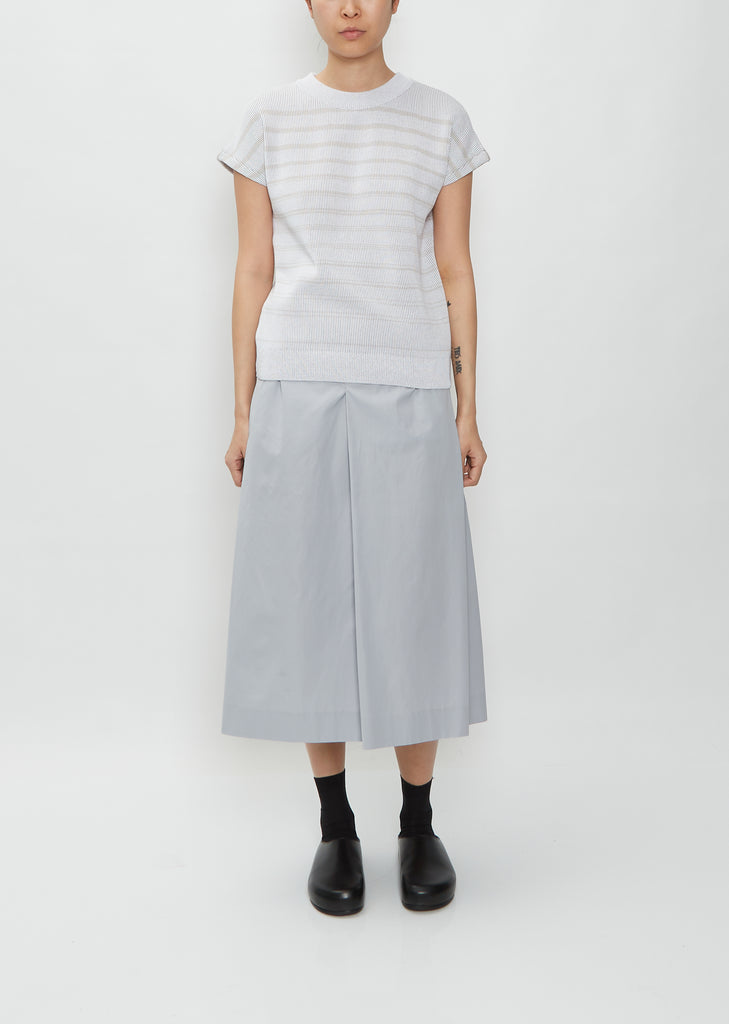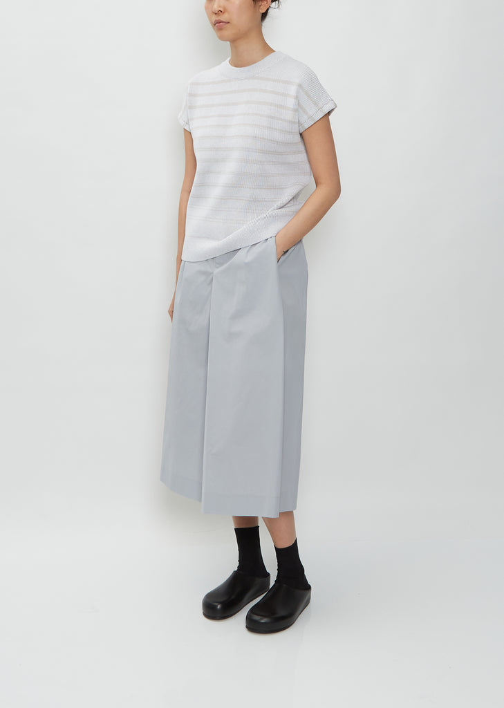 Stephan Schneider white and grey horizontal striped short dolman sleeve sweater in a cotton rib knit. Also available in Sand