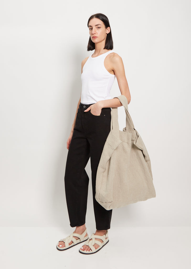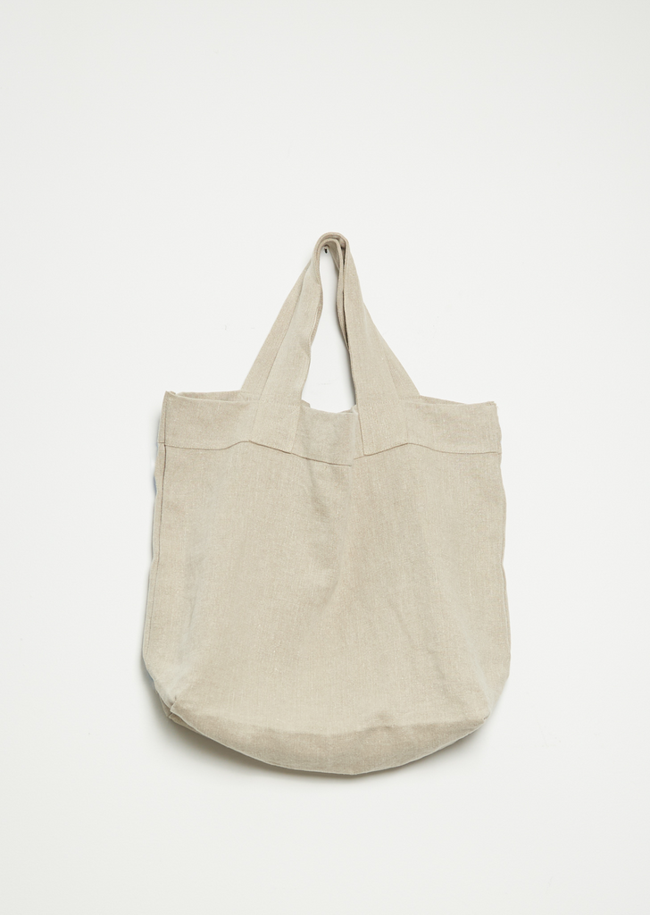 Charvet knock tote bag cut in heavyweight linen, which has been washed for a soft hand. Features two handles, wide border seam at opening, and flat bottom. Lined in self.