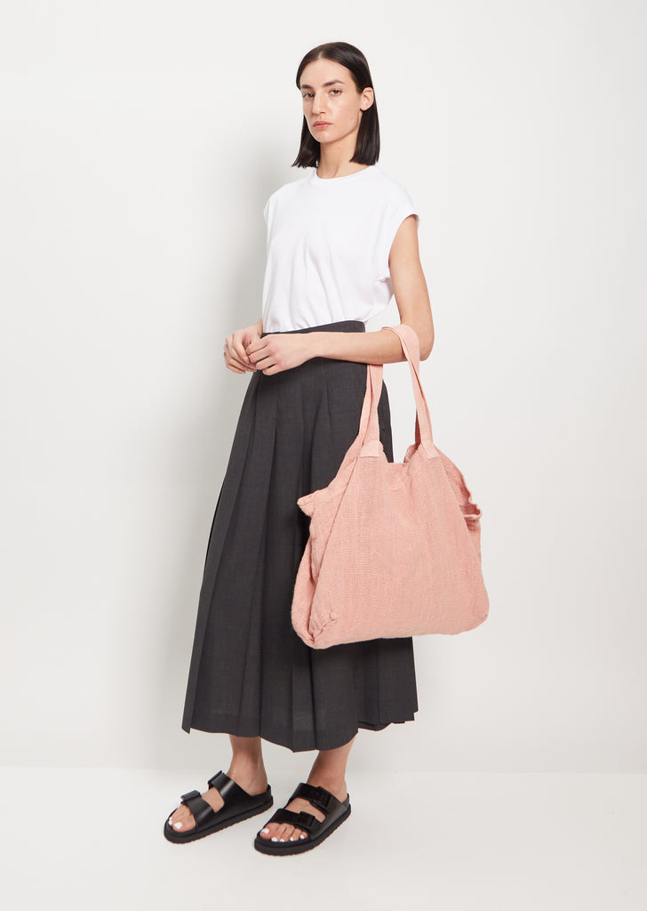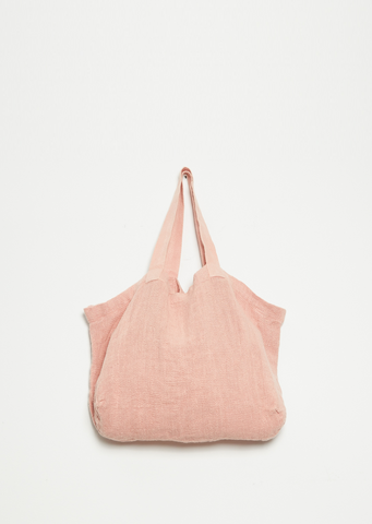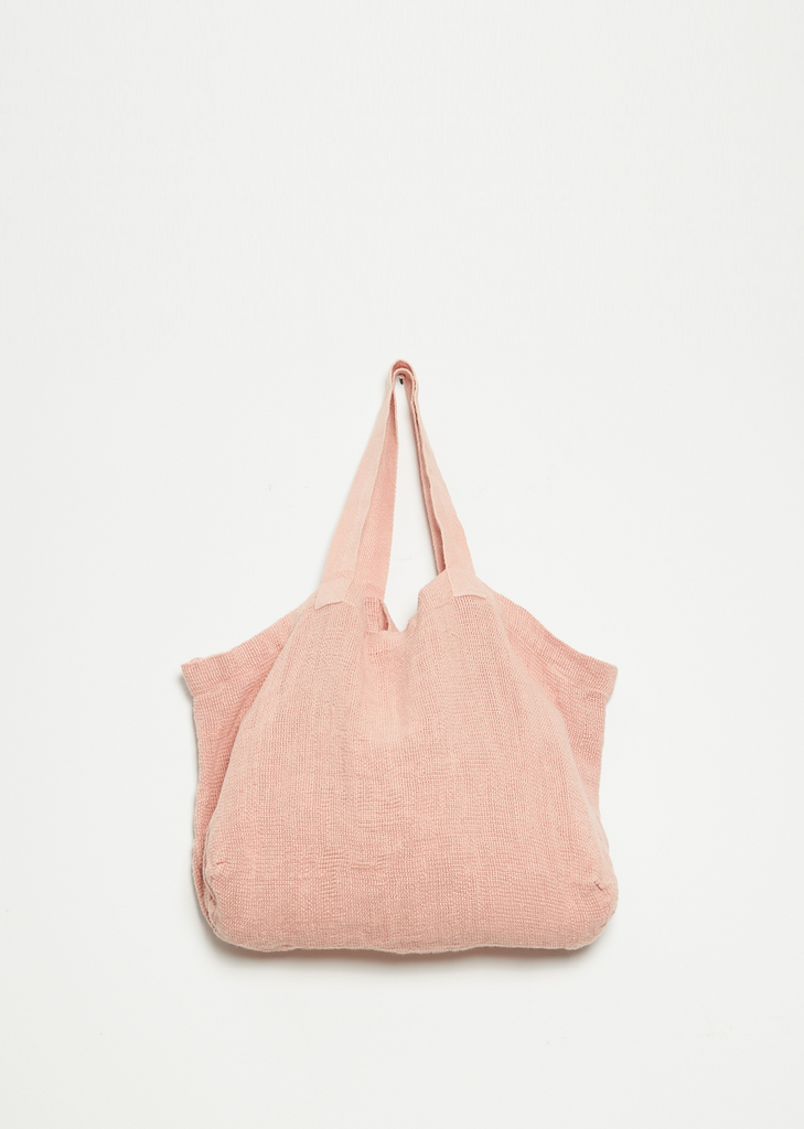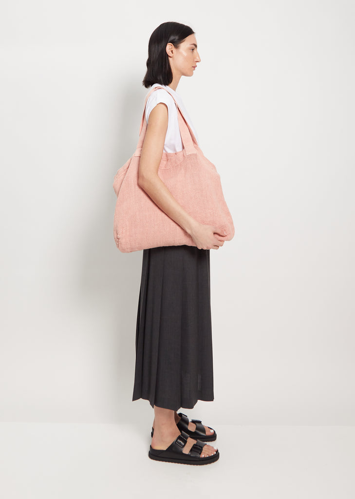 Charvet pink tote bag cut in heavyweight open knit linen, which has been washed for a soft hand. Features two handles and flat bottom. Unlined.