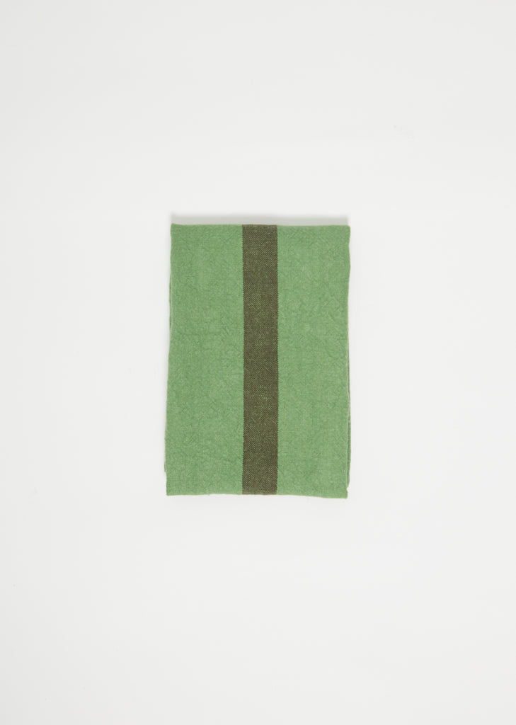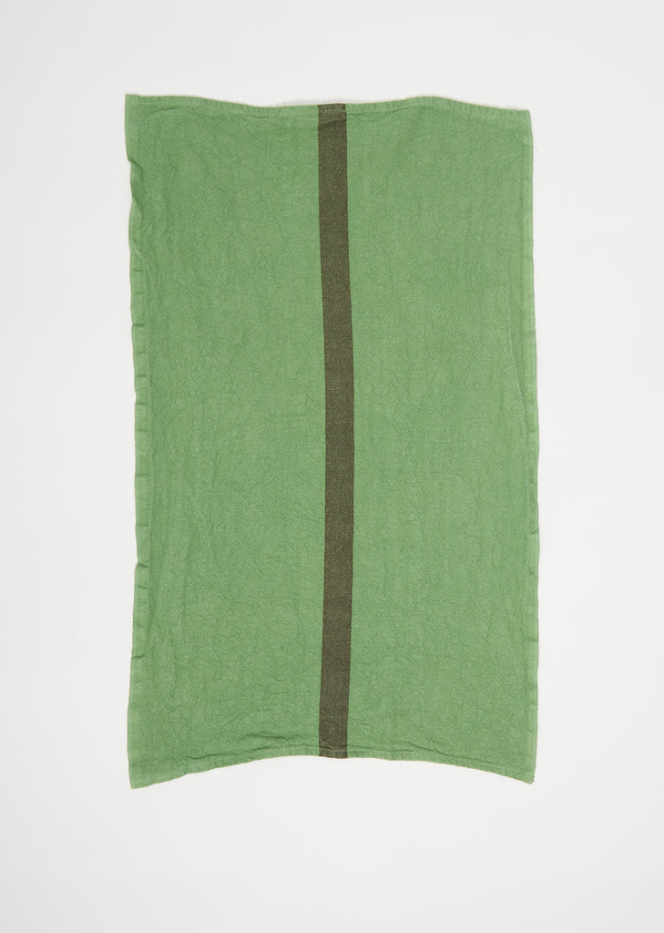 Charvet striped prairie tea towel inspired by the French Bistro culture from the 19th century, woven in a very thick washed linen according to an ancestral manufacturing method. This material has the particularity of absorbing moisture very effectively, much more than any other natural fiber.