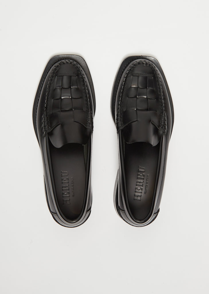 Hereu slip-on loafer with interwoven front detail, crafted in full-grain calf leather and calf leather lining. Hand-sewn using the traditional moccasin construction. The outsole is stitched to the upper for extra flexibility and durability.