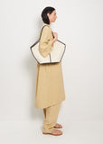 Color: Beige/Black. Body: 100% Organic Cotton, Handle/Trim: 100% Calf Leather, Pouch: 100% Cotton. Handmade in Spain.