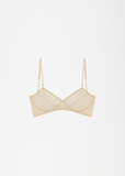 Kye Intimates wire-free balconette in premium deadstock mesh sourced from warehouses in Los Angeles. Features an easy v neckline with adjustable elasticized straps and back closure offer moderate support for everyday wear. Finished with tailored, single layer cups and a double layer frame at underbust for added support.