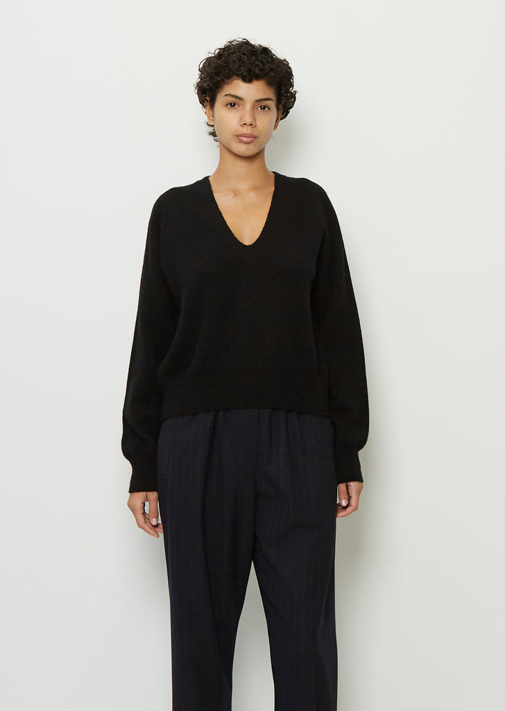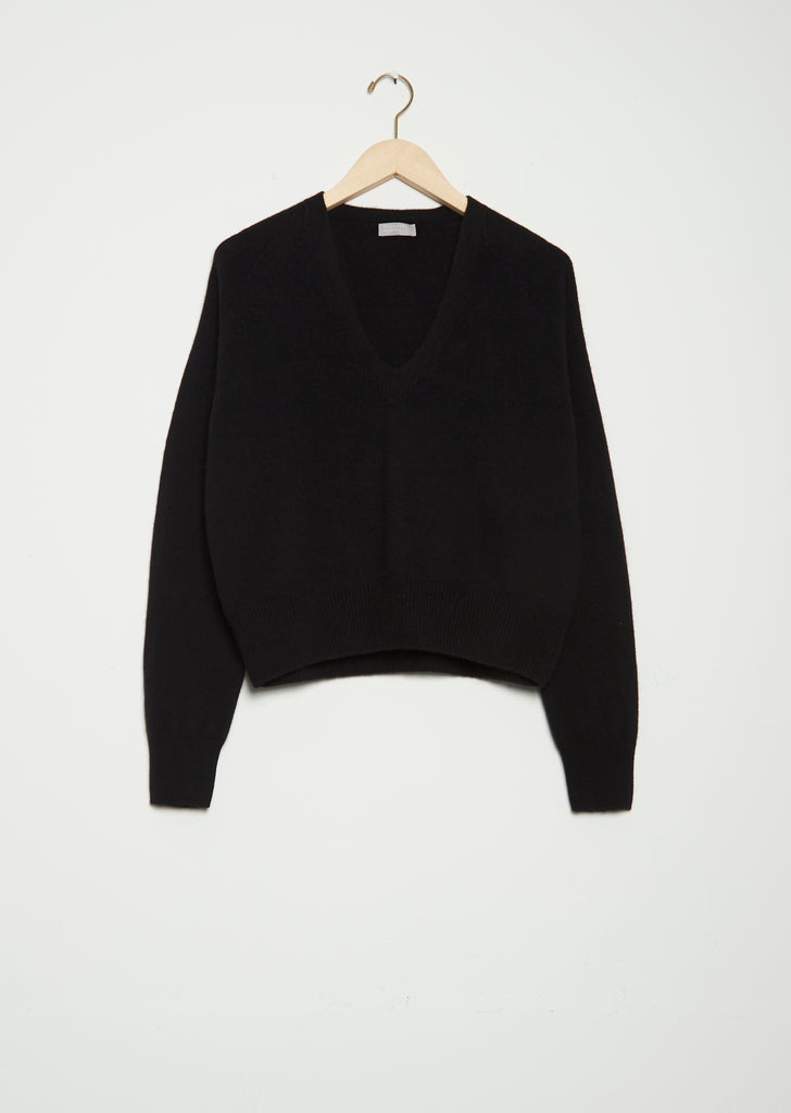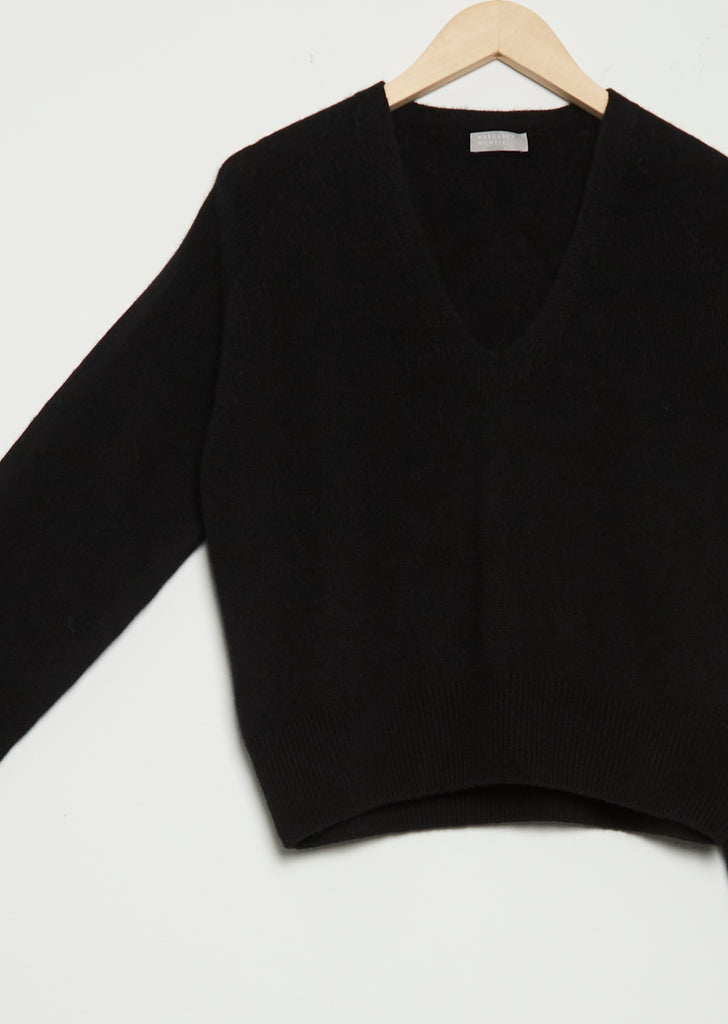 Cashmere Cropped V Neck — Black