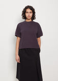 MHL by Margaret Howell indigo cropped t-shirt with a round neckline and wide seam trim finishes in mid weight organic cotton. Features a v stitch insert at neckline. Straight fit.