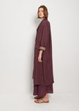 Massimo Alba plum single breasted trench coat in linen. Features notched lapels, two button closure, and two welt front pockets. Lined in contrast bronze material. Oversized fit.
