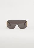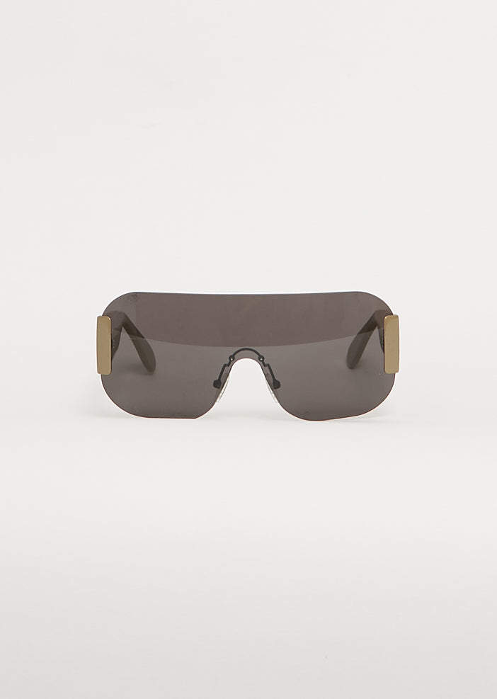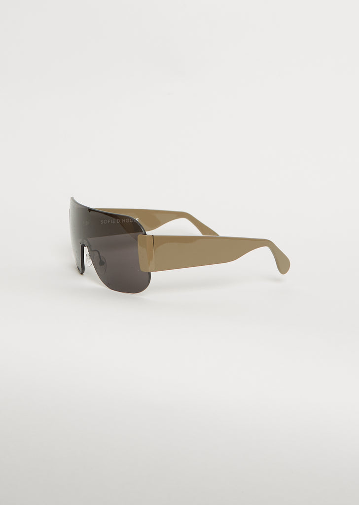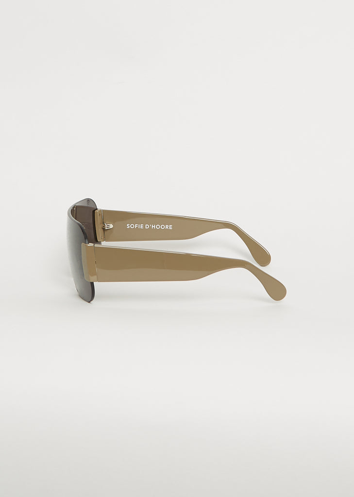Sofie D'Hoore wide framed aviator sunglasses with black tinted flat lenses and tobacco tapered arms.