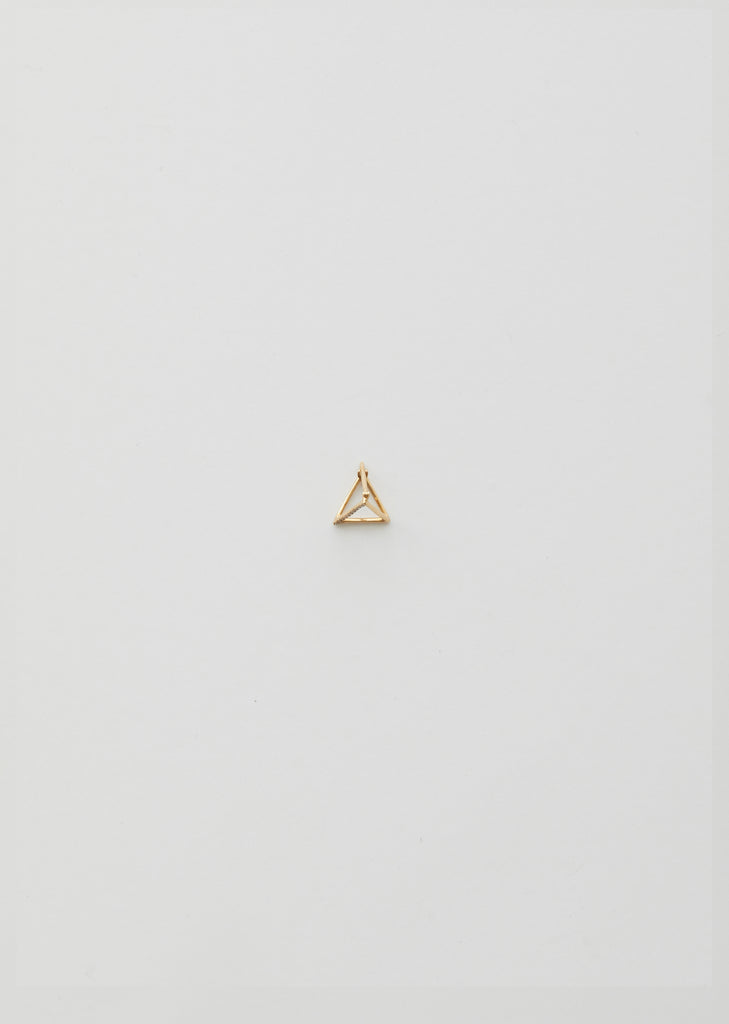 Shihara 3D Triangle Earring with diamonds in 18K yellow gold in 10mm (.39" inches) size.  Part of a series of signature three-dimensional earrings by the Japanese jeweler. Crafted in Japan with an innovative seamless construction, this earring appears to float seamlessly around the earlobe when worn. Finished with concealed latch fastening. This item is sold individually