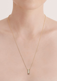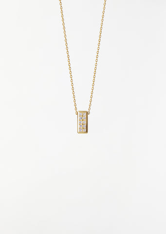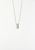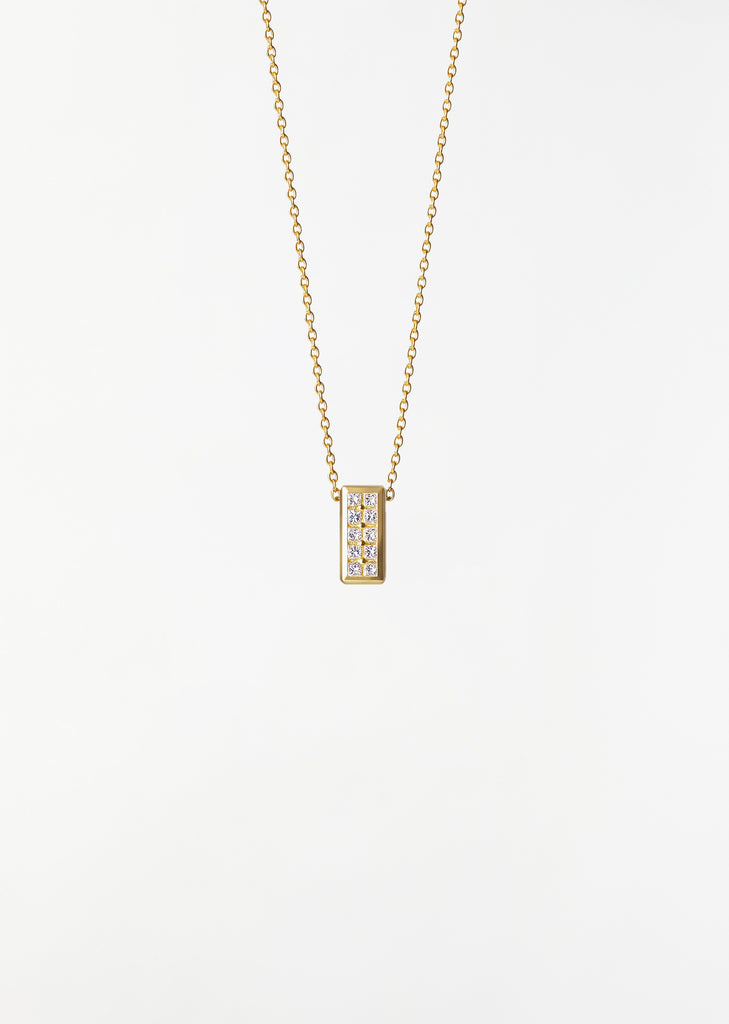 Shihara necklace with a cubit motif doubling as a hidden clasp handcrafted in 18K gold. It is set with princess cut diamonds on the top, front, and one side of the motif. Slide it up and down to open and close.