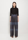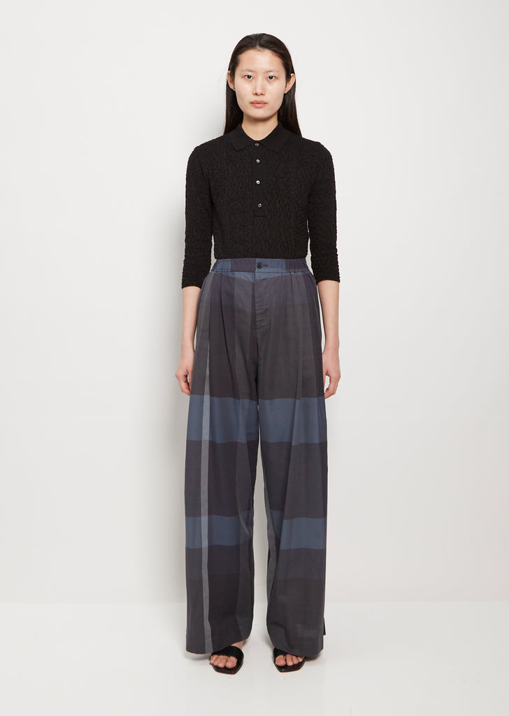 Stephan Scheider night wide leg trousers with front pleats in lightweight cotton. Features Waist a partially elasticated waistband, one back pocket finished with a button, side seam pockets, and concealed zip with button closure. Roomy fit.