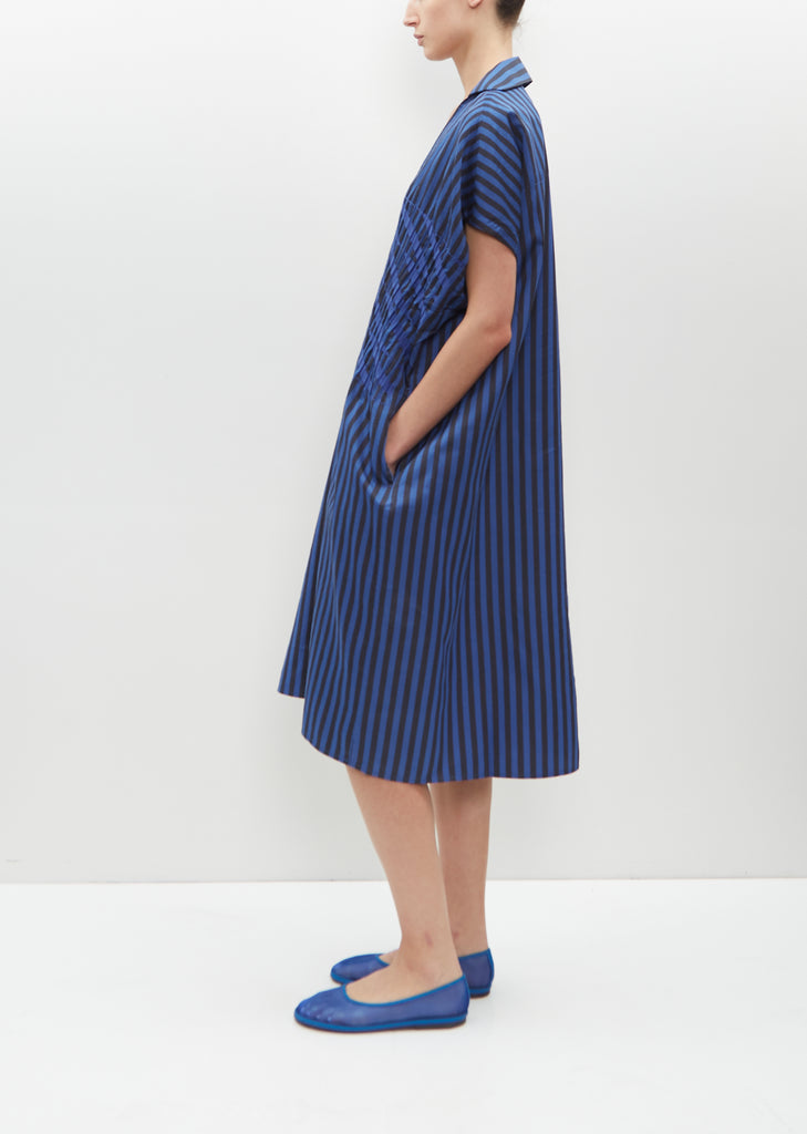 Pleated Embroidery Kaftan — Cobalt Stripe