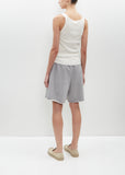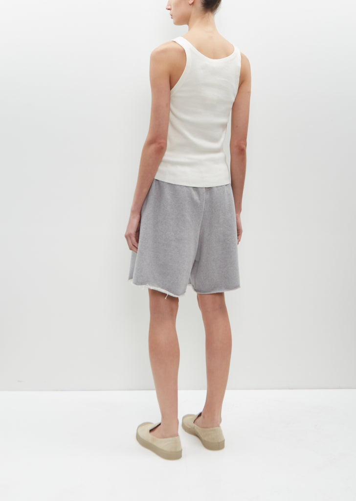 6397 white tank with round neckline soft ribbed cotton and cashmere blend knit. Finished with ribbed trim at neckline and armholes, and raw edge hem.
