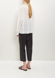 Dušan signature carrot pants with tapered, cropped legs in charcoal grey ultra luxurious Tasmanian tropical wool. This signature trouser features an elasticated waist for an easy, pull on fit with slash side pockets.