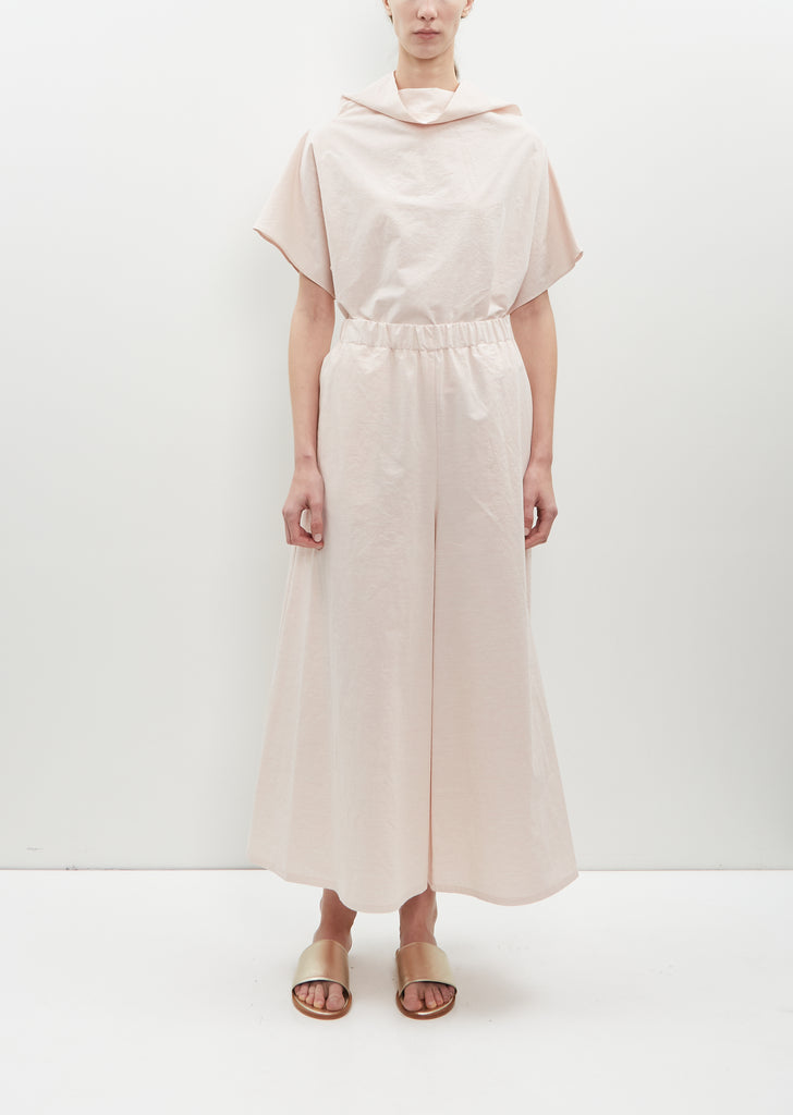 Dušan signature pull on trousers with cropped, wide legs in pale pink mid-weight smooth cotton. Features an elasticated waistband and slash side pockets. Easy fit.