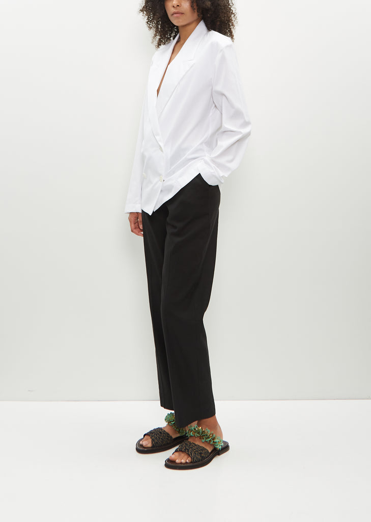 Dries Van Noten white double-breasted blazer-style shirt with peak lapels and Mother-of-pearl button closure in cotton poplin. This signature item from the label can be worn open as a light blazer. Straight silhouette with a regular fit.