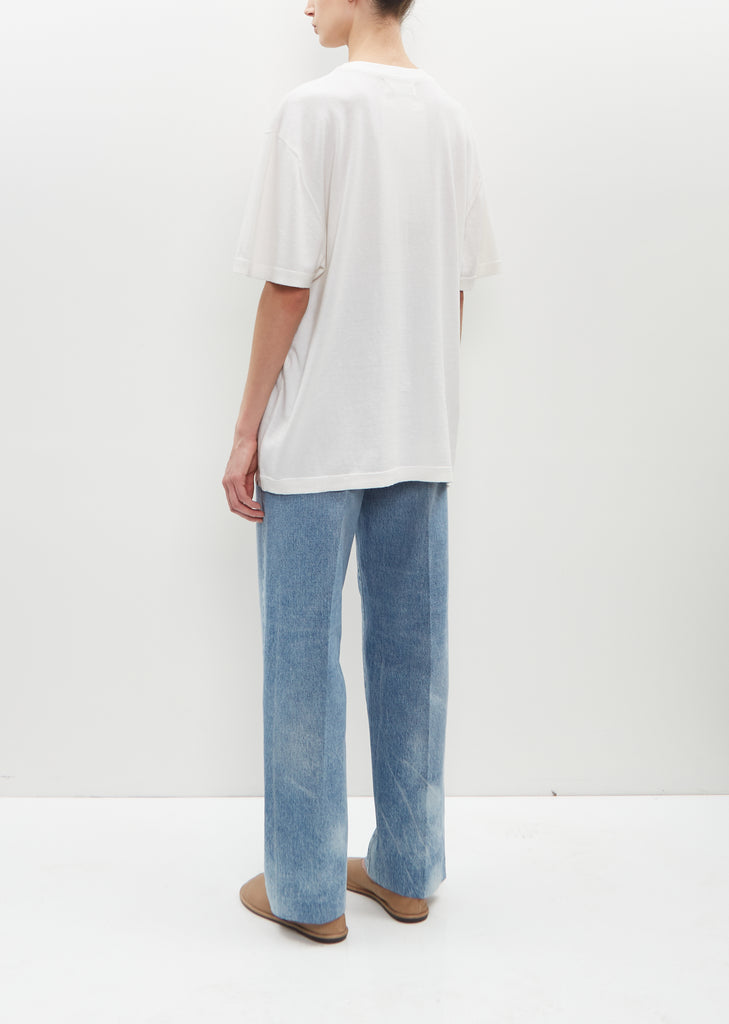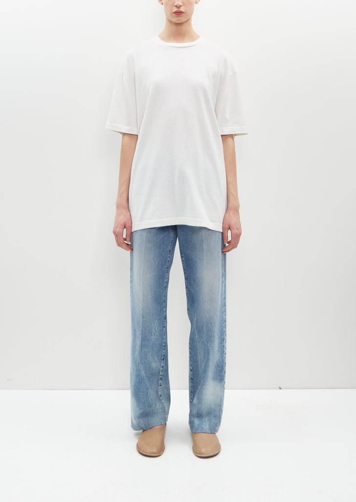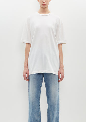 Extreme Cashmere snow white oversized t-shirt in cotton and cashmere blend jersey. Features a dropped shoulder and band collar trim at neckline.