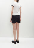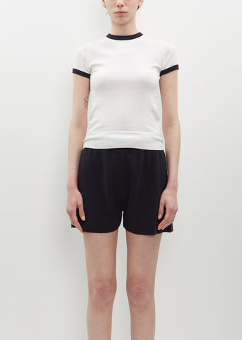 Extreme Cashmere white short sleeve tee with navy rib trims in cotton and cashmere blend jersey.